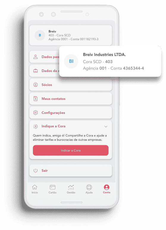 A Conta PJ Cora é livre de tarifas e burocracia: você não paga nada para abrir a sua com qualquer tipo de CNPJ (MEI, SLU, LTDA, etc.).
