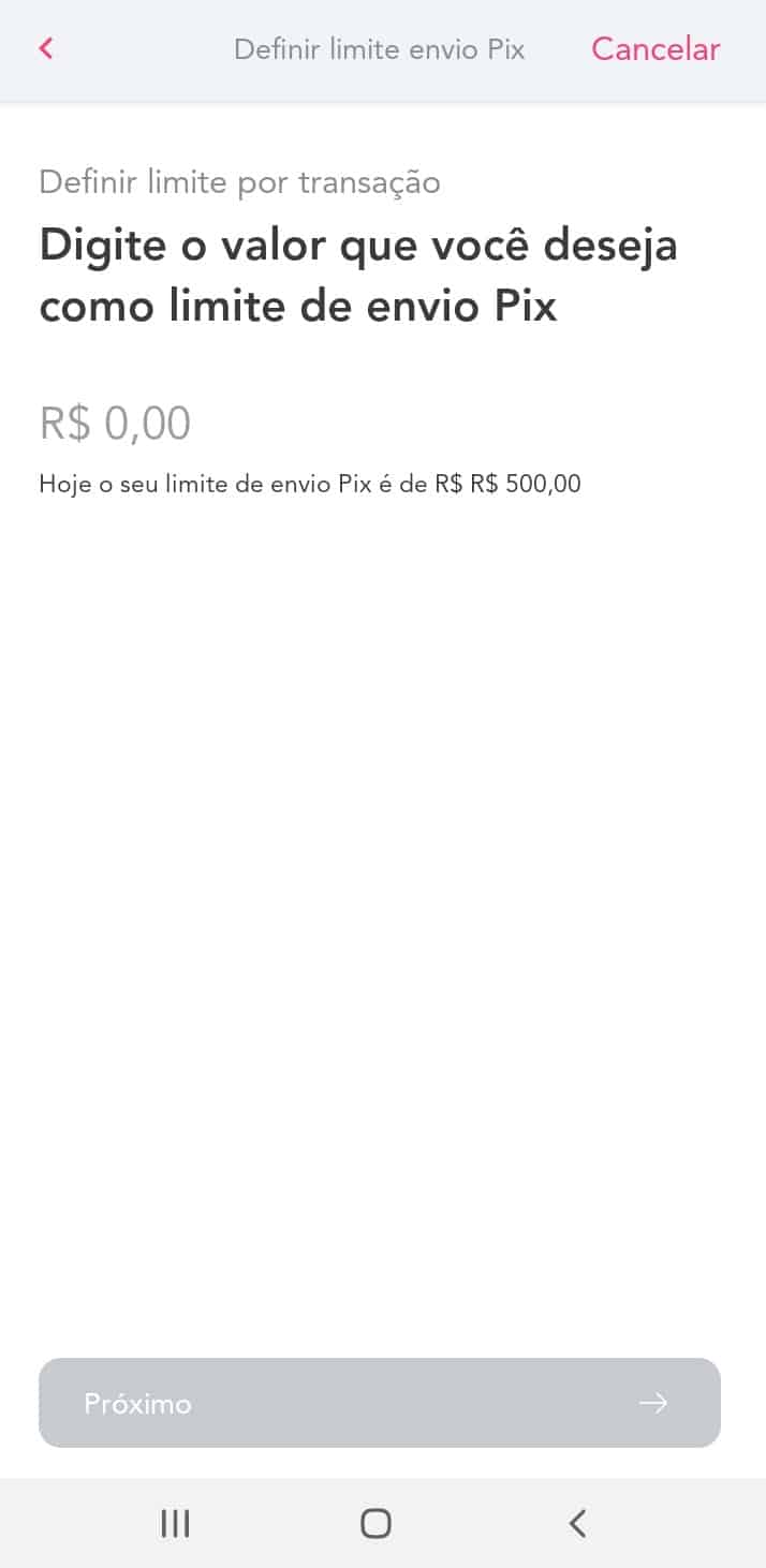 - Definir o valor que você deseja como limite de envio Pix por transação;