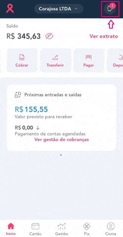 Você vai conseguir visualizar quais ações ainda estão pendentes de aprovação pelo computador na sessão “Aprovações pendentes” e, pelo celular, você poderá acessar o sininho no canto superior direito e aprovar todas as transações. Confira: